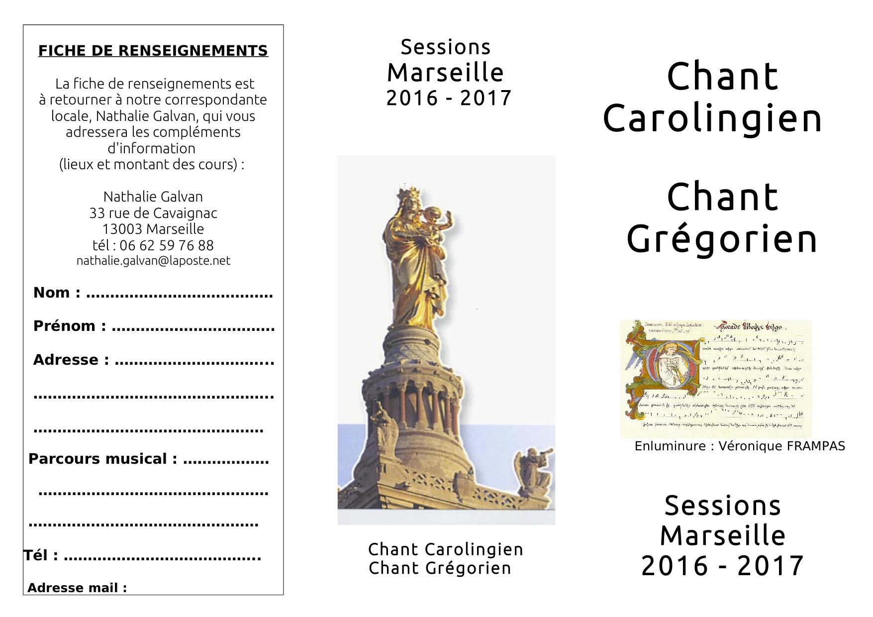 Sessions de chant grégorien-chant carolingien à Marseille / année 2016-17