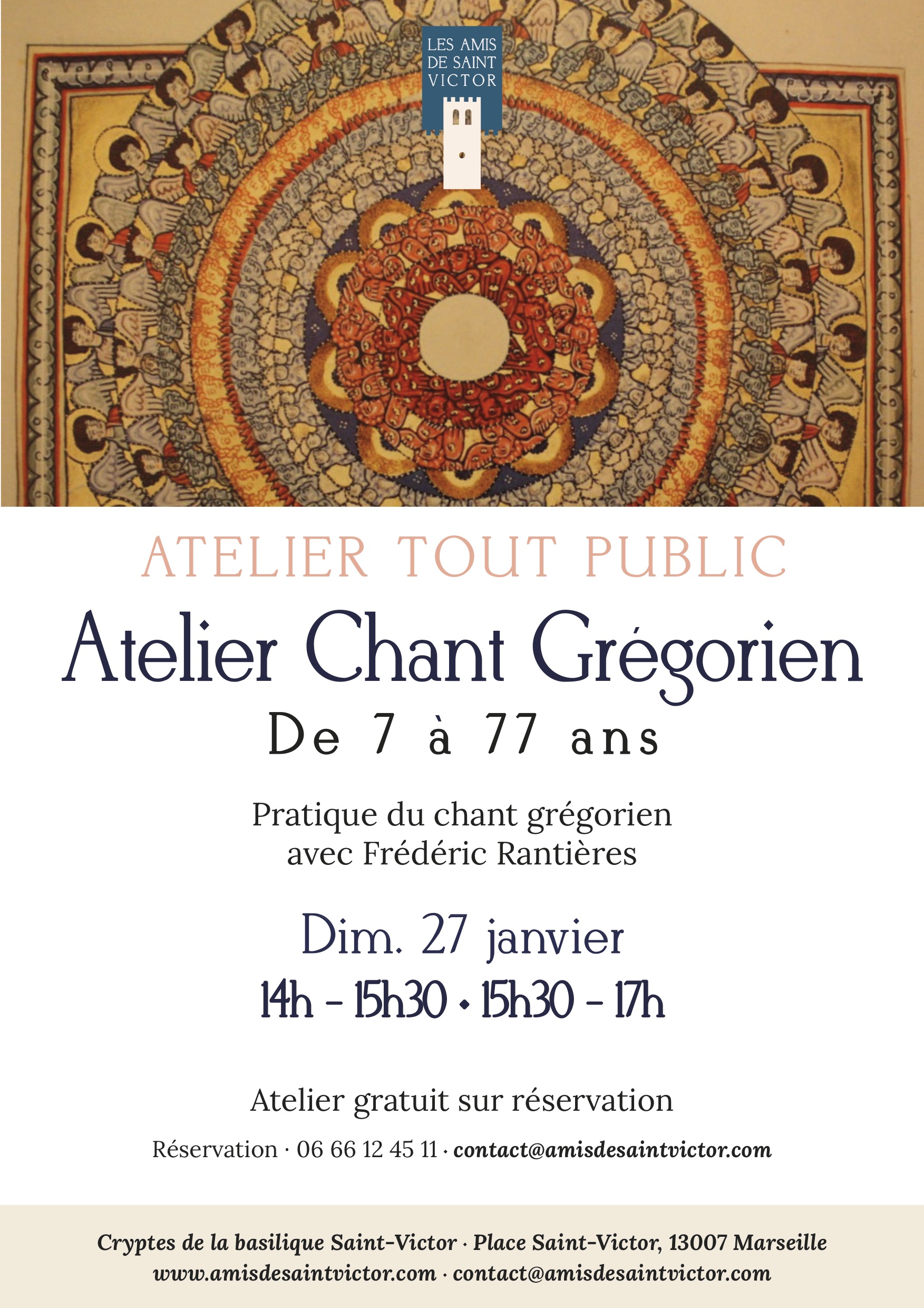 >> Dimanche 27 janvier 2019 de 14h à 17h dans les cryptes de l’Abbaye Saint-Victor de Marseille : ateliers de chant grégorien ouvert à tout public dans le cadre du spectacle de l’ensemble Vox In Rama sur Hildegarde de Bingen