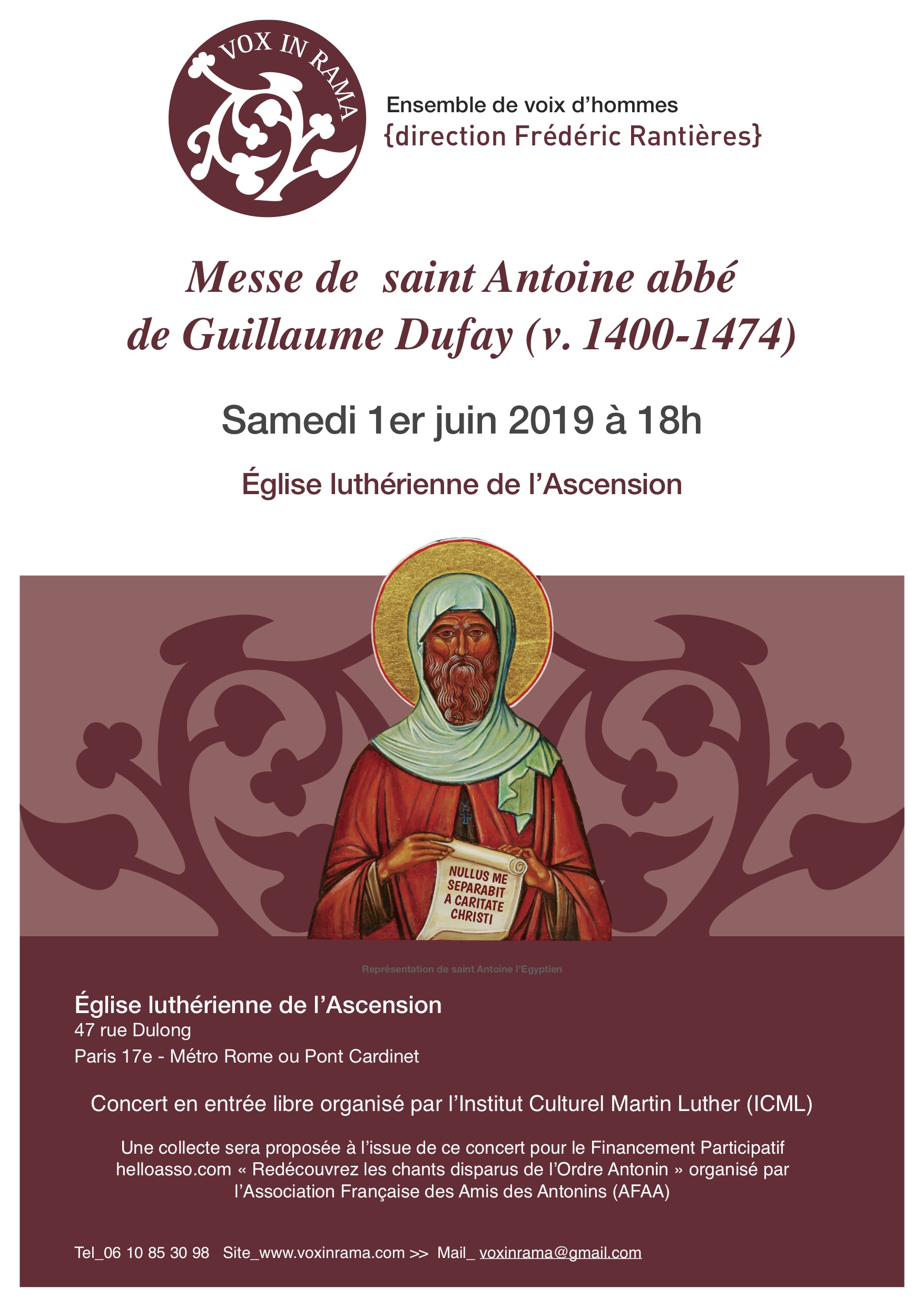 Messe de saint Antoine abbé de Guillaume Dufay / église luthérienne de l’Ascension / Paris 17e